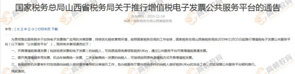另外,浙江省稅務局、山西省稅務局等積極推廣增值稅電子發(fā)票公共服務平臺,免費向小規(guī)模納稅人發(fā)放UKey,領(lǐng)取Ukey的納稅人可以通過公共服務平臺開具增值稅普通發(fā)票。