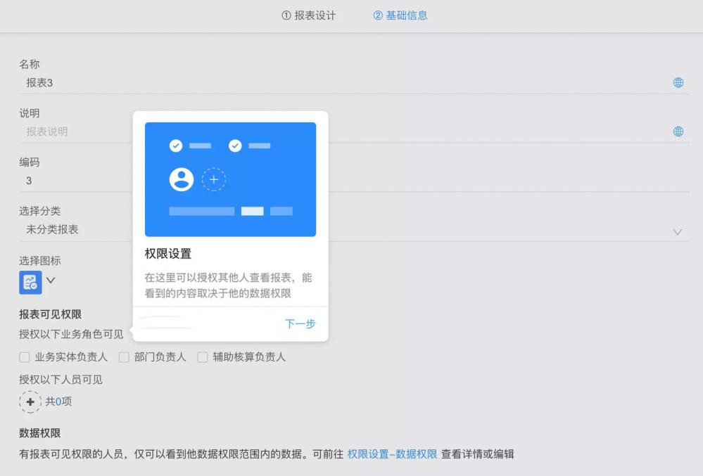 2)圖表多維設(shè)置、添加基礎(chǔ)信息:在創(chuàng)建圖表后,需要進(jìn)行圖表的配置過程,包括分析維度、指標(biāo),展現(xiàn)形式、添加數(shù)據(jù)過濾條件等,真正實(shí)現(xiàn)報(bào)表的自定義設(shè)計(jì)。此外,還可以進(jìn)行基礎(chǔ)信息的填寫,對圖表權(quán)限和數(shù)據(jù)權(quán)限進(jìn)行授權(quán)。(在不需要授權(quán)時,此步驟也可以跳過哦~)