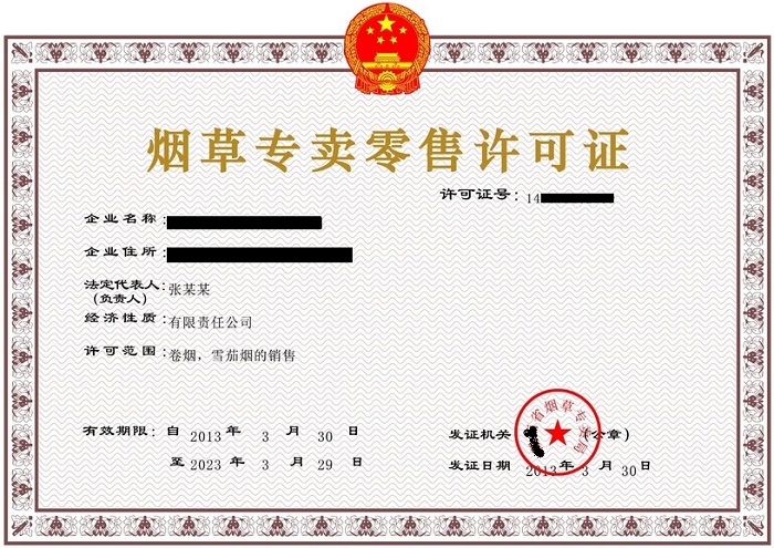 煙草專賣許可證是根據(jù)《中華人民共和國煙草專賣法》、《中華人民共和國行政許可法》、《中華人民共和國煙草專賣法實(shí)施條例》及《煙草專賣許可證管理辦法》等相關(guān)法律、法規(guī)和規(guī)章制訂的規(guī)定。