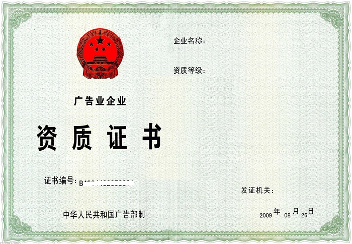 廣告資質辦理和廣告公司辦理許可資質審批流程需要提供的材料和辦理廣告公司廣告資質需要的條件,廣告公司開廣告公司,分二種,一種是制作設計類的公司,這種比較簡單,一種是有廣告發(fā)布權的廣告公司,這種需要經過行政審批,獲得廣告經營許可證,才能開辦. 綜合性廣告企業(yè)資質等級標準 一級企業(yè)標準 1、企業(yè)成立時間3年以上,企業(yè)成立以來資產得到增值,企業(yè)利潤率高于行業(yè)平均水平; 2、注冊資本不低于400萬元; 3、廣告專業(yè)設備凈值200萬元以上; 4、廣告年營業(yè)收入不低于1200萬元以上; 5、具有開展包括市場調查、廣告創(chuàng)意、廣告制作、媒體實施、廣告效果測定、企業(yè)形象代理、市場營銷代理等內容的整體廣告代理服務能力和經營實績; 6、企業(yè)總經理等業(yè)務負責人具有3年以上廣告經營管理經驗和大專以上文化學歷; 7、具有大專以上文化學歷人員占員工總數(shù)80%以上; 8、具有至少5個業(yè)務合作關系2年以上的固定客戶; 9、為8個以上品牌提供綜合代理服務; 10、為3個以上國內品牌提供過境外(包括港、澳、臺地區(qū))廣告服務; 11、企業(yè)提供綜合性代理服務所得營業(yè)收入占總營業(yè)收入的70%以上,純媒介代理服務營業(yè)收入和其他營業(yè)收入低于總營業(yè)收入的30%; 12、企業(yè)至少在平面、廣播、影視、戶外廣告媒體中的3種媒體為客戶提供過廣告設計、制作、代理發(fā)布服務; 13、具有跨省開展促銷、公關等廣告經營活動的能力和實績; 14、創(chuàng)作發(fā)布過在全國或國際性廣告作品評比中獲獎作品; 15、中外合資、合作廣告企業(yè),至少應為5個以上國內企業(yè)(不包括各類外商投資企業(yè))提供過境外(包括港、澳、臺地區(qū))廣告服務; 16、廣告經營資格連續(xù)二年以上檢查合格; 17、具有為公益事業(yè)做出貢獻的實績。 二級企業(yè)標準 1、企業(yè)成立時間3年以上,企業(yè)成立以來資產得到增值,企業(yè)利潤率高于行業(yè)平均水平; 2、注冊資本不低于200萬元; 3、廣告專業(yè)設備凈值100萬元以上; 4、廣告年營業(yè)收入不低于800萬元; 5、具有開展包括市場調查、廣告創(chuàng)意、廣告制作、媒體實施、廣告效果測定、企業(yè)形象代理、市場營銷代理等內容的整體廣告代理服務能力和經營實績; 6、企業(yè)總經理等業(yè)務負責人具有3年以上廣告經營管理經驗和大專以上文化學歷; 7、具有大專以上文化學歷人員占員工總數(shù)70%以上; 8、具有至少3個業(yè)務合作關系2年以上的固定客戶; 9、為5個以上品牌提供綜合代理服務; 10、為國內品牌提供過境外(包括港、澳、臺地區(qū))廣告服務; 11、企業(yè)提供綜合性代理服務所得營業(yè)收入占總營業(yè)收入的70%以上,純媒介代理服務營業(yè)收入和其它營業(yè)收入低于總營業(yè)收入的30%; 12、企業(yè)至少在平面、廣播、影視、戶外廣告媒體中的3種媒體為客戶提供廣告設計、制作、代理發(fā)布服務; 13、具有跨省開展促銷、公關等廣告經營活動的能力和實績; 14、創(chuàng)作發(fā)布過在全國或國際性廣告作品評比中獲獎作品; 15、中外合資、合作廣告企業(yè),至少應為3個以上國內企業(yè)(不包括各類外商投資企業(yè))提供過境外(包括港、澳、臺地區(qū))廣告服務; 16、廣告經營資格連續(xù)二年以上檢查合格; 17、具有為公益事業(yè)做出貢獻的實績。 三級企業(yè)標準 1、企業(yè)成立時間2年以上,企業(yè)成立以來資產得到增值,企業(yè)利潤率高于行業(yè)平均水平; 2、注冊資本不低于100萬元; 3、廣告專業(yè)設備凈值50萬元以上; 4、廣告年營業(yè)收入不低于400萬元; 5、具有開展包括市場調查、廣告創(chuàng)意、廣告制作、媒體實施、廣告效果測定等內容的廣告代理服務能力和經營實績; 6、企業(yè)總經理等業(yè)務負責人具有2年以上廣告經營管理經驗和大專以上文化學歷; 7、具有大專以上文化學歷人員占員工總數(shù)60%以上; 8、具有至少2個業(yè)務合作關系2年以上的固定客戶; 9、為3個以上品牌提供綜合代理服務; 10、企業(yè)提供綜合性代理服務所得營業(yè)收入占總營業(yè)收入的70%以上,純媒介代理服務營業(yè)收入和其它營業(yè)收入低于總營業(yè)收入的30%; 11、企業(yè)至少在平面、廣播、影視、戶外廣告媒體中的2種媒體為客戶提供廣告設計、制作、代理發(fā)布服務; 12、中外合資、合作廣告企業(yè),為國內企業(yè)(不包括各類外商投資企業(yè))提供過境外(包括港、澳、臺地區(qū))廣告服務; 13、廣告經營資格連續(xù)二年以上檢查合格; 14、具有為公益事業(yè)做出貢獻的實績。 廣告制作企業(yè)資質等級標準(試行) 一級企業(yè)標準 1、企業(yè)成立時間3年以上,企業(yè)成立以來資產得到增值,企業(yè)利潤率高于行業(yè)平均水平; 2、注冊資本不低于400萬元; 3、廣告設計、制作設備凈值500萬元以上; 4、廣告年營業(yè)收入600萬元以上; 5、具有與制作影視廣告、廣播廣告、平面廣告、戶外廣告相適應的專業(yè)技術人員、專業(yè)技術設備、專業(yè)工作場地,其中專業(yè)技術人員占員工總數(shù)比例50%以上; 6、企業(yè)年制作廣告作品50件以上; 7、企業(yè)年制作國際品牌廣告作品占總作品比例10%以上; 8、企業(yè)總經理等業(yè)務負責人具有3年以上